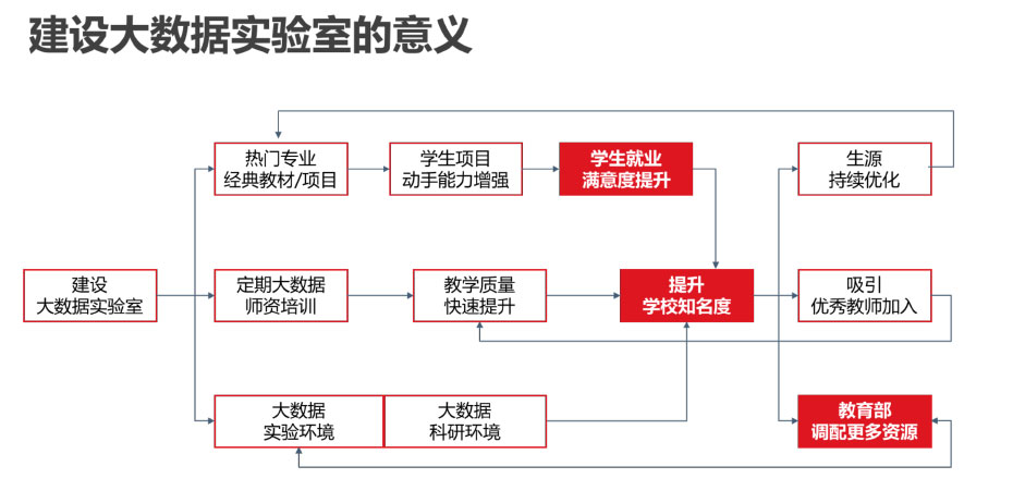 熱門專業(yè)經(jīng)典教材/項(xiàng)目、學(xué)生項(xiàng)目動(dòng)手能力增強(qiáng)、學(xué)生就業(yè)滿意度提升、定期大數(shù)據(jù)師資培訓(xùn)、教學(xué)質(zhì)量快速提升、提升學(xué)校知名度;生源持續(xù)優(yōu)化、吸引優(yōu)秀教師加入、教育部調(diào)配更多資源;