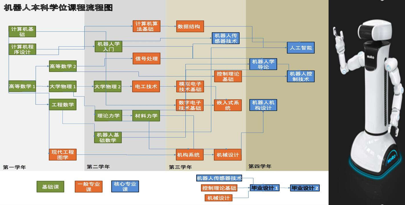 機(jī)器人本科學(xué)位課程:機(jī)器人傳感器技術(shù)、機(jī)器人學(xué)導(dǎo)論、機(jī)器人機(jī)構(gòu)設(shè)計(jì)、人工智能、機(jī)器人控制技術(shù)、機(jī)械設(shè)計(jì)