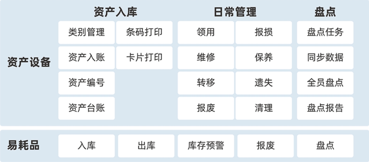 自定義資產條碼、卡片,對接專用打印設備批量打印。易耗品入庫、出庫、庫存預警全方位管理,保障易耗品的使用安全、實現精細化管理。提供手機移動端資產服務,資產盤點更高效,節約硬件采購成本。